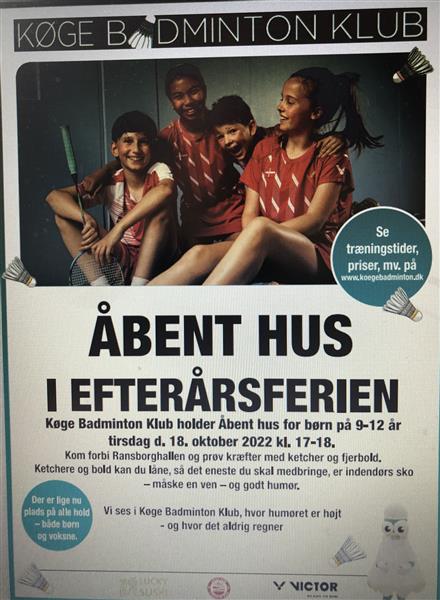 I inviteres til Åbent hus i Ravnsborghallen tirsdag d. 18. oktober kl. 17-18. Det er muligt at låne en ketcher. Se info på foto.
