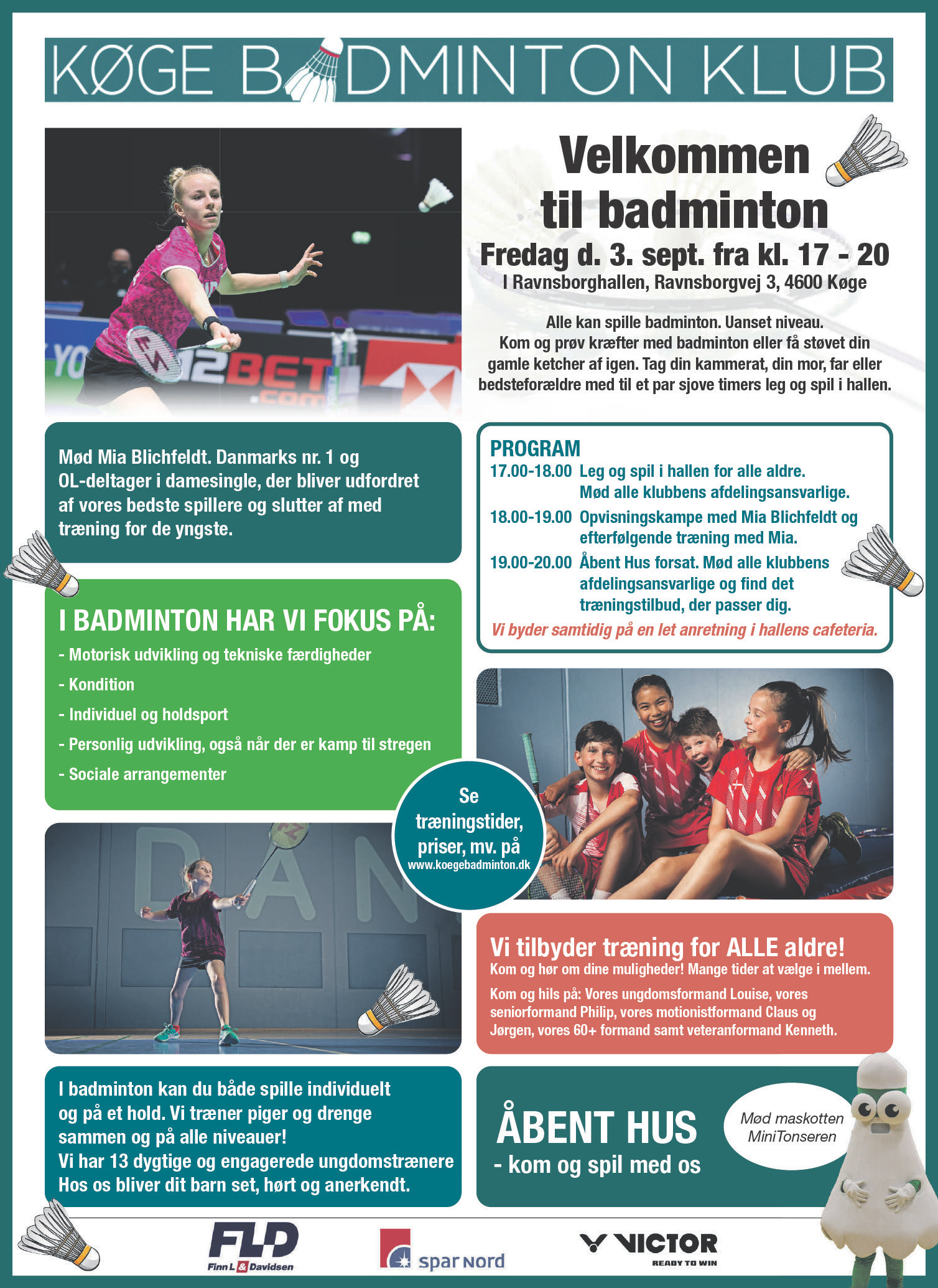Fredag den 3. september kl. 17.00-20.00 sparker Køge Badminton Klub sæsonen i gang med Åbent hus - en aften, hvor hele familien kan deltage: